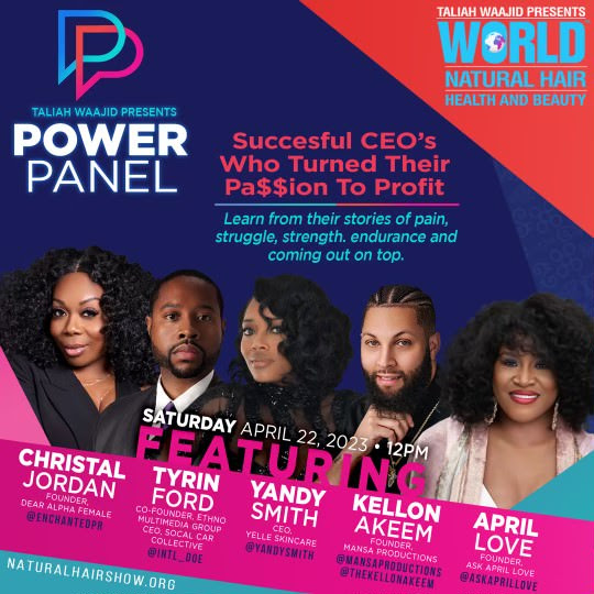 Taliah has given back through her business, mentoring, providing employment, education and more, with the mission to create opportunities for millions. The World Natural Hair Event is another platform that she has created to live out her goals of uplifting her community and provide opportunity to those full of potential.